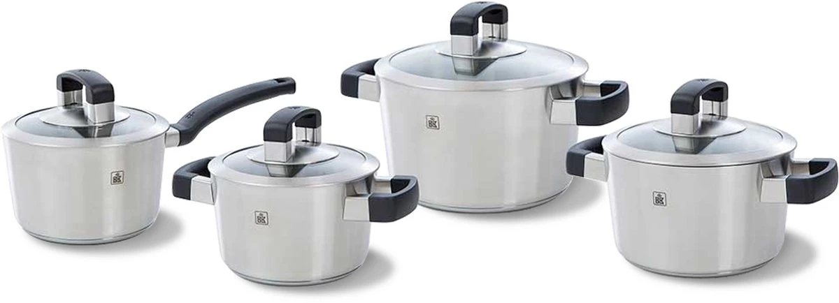 BK Conical Cool Glas Pannenset – 4-delig – RVS – Glazen Deksel – Inductie