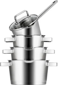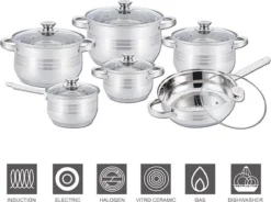 Pannenset 13 Delig – RVS – Pan / Steelpan / Koekenpan – Met Glazen Deksels – Inductie – PFAS-vrij