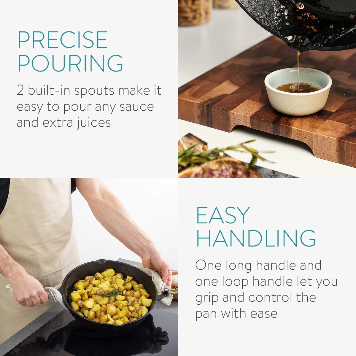 - VEELZIJDIGE PAN: De gietijzeren koekenpan van Navaris is ontzettend veelzijdig. Vlees braden, pannenkoeken bakken, een stoofschotel bereiden of pizza maken – het kan allemaal in deze pan van gietijzer.