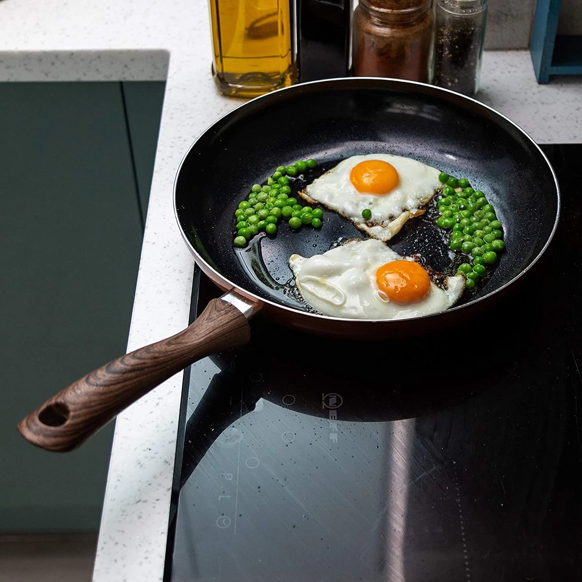 Onze koekenpannenset voor koekenpannen bevat een pan van 24 cm. Een perfecte essentiële pan om een breed scala aan gerechten te bakken en sauteren, van eenvoudige roereieren tot een volledige dinermaaltijd. Deze koekenpan met antiaanbaklaag wordt uw favoriete kookset in de keuken!