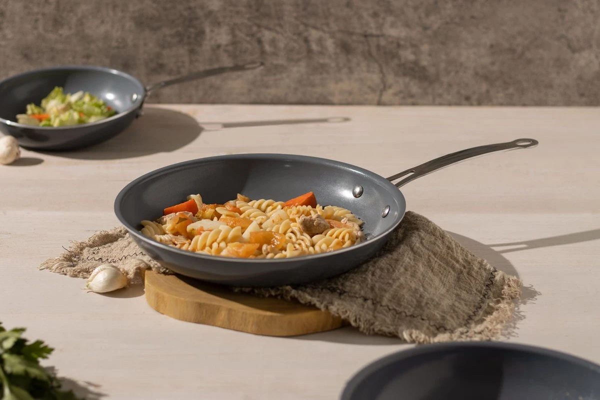 Ja, Swiss Pro+ is hét gezonde keukenmerk bij uitstek! De antikleeflaag van Swiss Pro+ bevat géén schadelijke chemische stoffen (geen PFOA, PFAS, lood of cadmium) en is gemaakt op basis van natuurlijke grondstoffen, zoals zand. Je bent dus zeker dat er geen schadelijke dampen kunnen vrijkomen, zelfs als je graag bakt op zeer hoge temperaturen. Zo helpt Swiss Pro+ je veilig én gezond koken.