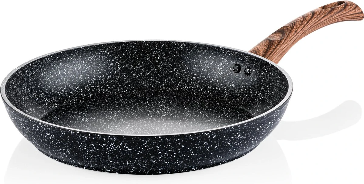 Met de Westinghouse Zwart Marmer Koekenpan Speciale Editie (30cm) haal je een mooie basis pan in huis. De uiterst sterke anti-aanbaklaag maakt dat je stukje vis of gebakken groentjes niet vastplakken, zelfs met weinig vetstof. De pan is gemaakt uit aluminium wat zorgt voor een snelle opwarming en gelijkmatige warmteverdeling. Zo bak je de aardappeltjes altijd mooi egaal bruin.